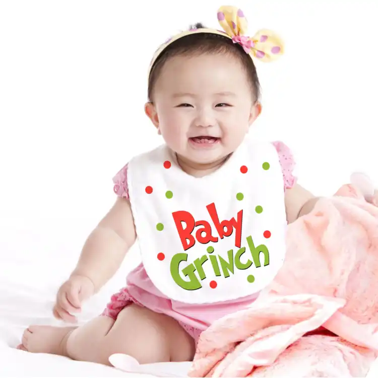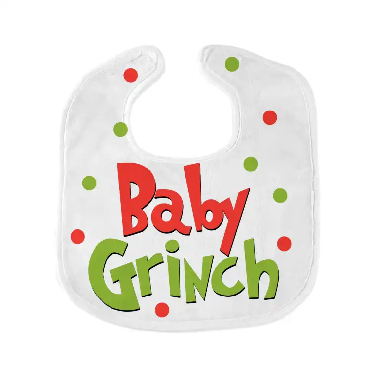 Tags: Baby Grinch, Grinch Baby bib, infant bib, cotton, velcro, polyester, plush microfiber
