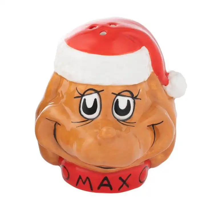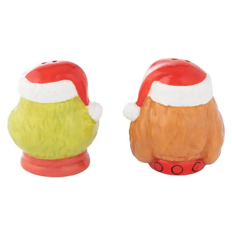 sculpted Dr. Seuss Grinch and Max Sculpted Ceramic Salt & Pepper Shaker Set coordinates wonderfully alongside our Grinch kitchen, ceramic and glassware.