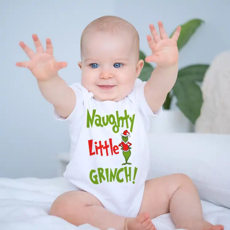 Naughty Little Grinch Infant Bodysuit - Short and Long Sleeve - Sizes up to 24 Months