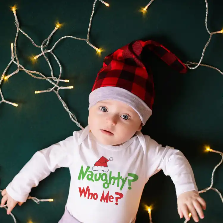 Naughty? Who Me? Grinch Inspired Infant Bodysuit - Short and Long Sleeve - Sizes up to 24 Months